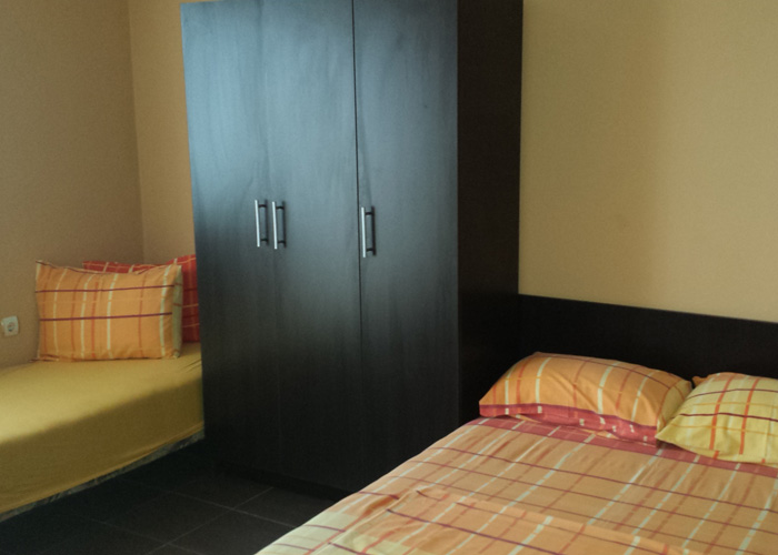 Trokrevetni apartmani u svom sadržaju imaju jedan francuski i jedan običan krevet. Imaju svoju mini kuhinju, kupatilo kao i svoju terasu.